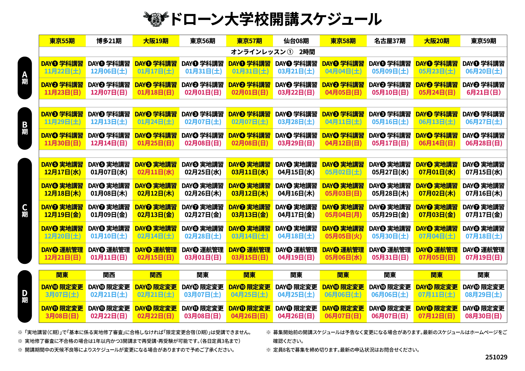この無人航空機操縦者技能証明には、レベル4飛行(第三者上空での補助者なし目視外飛行)に対応した「一等無人航空機操縦士」と、レベル3飛行(無人地帯での補助者なし目視外飛行)に対応した「二等無人航空機操縦士」の2種類の技能証明が用意されていますが「空の産業革命」の概念からすれば、当然「一等無人航空機操縦士」が今後のドローンビジネスには必須であることから、ドローン大学校は「一等無人航空機操縦士専門校」として「一等無人航空機操縦士」の取得を目指したカリキュラムのみをご提供しています。